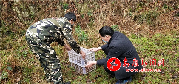 3月2日,喜河鎮(zhèn)長陽村支部書記江本忠和生態(tài)護林員李品府將一只鼬獾放歸大自然。