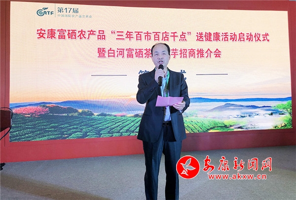 魯琦從生態(tài)環(huán)境、資源稟賦、區(qū)位優(yōu)勢(shì)等方面介紹了安康市情和現(xiàn)代農(nóng)業(yè)發(fā)展情況,重點(diǎn)推介了安康富硒茶、富硒魔芋等特色富硒農(nóng)產(chǎn)品。他表示,安康被譽(yù)為“世界硒源、中國(guó)硒谷”,天然富硒土壤生長(zhǎng)出來的富硒農(nóng)產(chǎn)品,是人體天然補(bǔ)硒、健康養(yǎng)生的最佳途徑。依托天然富硒資源優(yōu)勢(shì),全市正聚焦富硒產(chǎn)業(yè)綜合產(chǎn)值2000億元目標(biāo),全力打造“世界硒源地,國(guó)際健康城”。舉辦本次活動(dòng)旨在搭建經(jīng)貿(mào)交流平臺(tái),讓更多的人認(rèn)識(shí)安康,共享安康富硒茶、富硒魔芋等優(yōu)質(zhì)富硒農(nóng)產(chǎn)品。魯琦向在場(chǎng)100余位當(dāng)?shù)乜蜕碳吧鐣?huì)各界發(fā)出誠摯邀請(qǐng),真誠期待和歡迎各界人士到安康投資富硒產(chǎn)業(yè),共建全國(guó)富硒產(chǎn)業(yè)之鄉(xiāng)、齊為人類健康服務(wù)。
