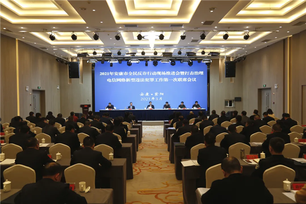 春風(fēng)吹奮進,反詐正當(dāng)時,3月9日,中共安康市委、安康市人民政府在紫陽縣召開2021年安康市全民反詐行動現(xiàn)場推進會暨打擊治理電信網(wǎng)絡(luò)新型違法犯罪工作第一次聯(lián)席會議,認(rèn)真學(xué)習(xí)貫徹習(xí)近平總書記關(guān)于打擊治理電信網(wǎng)絡(luò)新型違法犯罪工作重要指示精神,全面落實中省部署新要求,推動構(gòu)建“黨政主導(dǎo)、部門主責(zé)、公安主打、群眾主體”四位一體全社會反詐新格局,以“兩降四無”(發(fā)案數(shù)下降、群眾損失下降,無電信網(wǎng)絡(luò)詐騙案件、無詐騙犯罪嫌疑人、無“兩卡”涉案人員、無詐騙窩點)為創(chuàng)建標(biāo)準(zhǔn),在全省率先從全市層面全面鋪開“無詐村(社區(qū))、單位、鎮(zhèn)(辦)”創(chuàng)建活動暨全民反詐行動,把打贏反詐人民戰(zhàn)爭作為政法隊伍教育整頓為群眾辦好的一件實事,進一步助力市域社會治理現(xiàn)代化和更高水平平安安康建設(shè),推動安康政法工作高質(zhì)量發(fā)展。