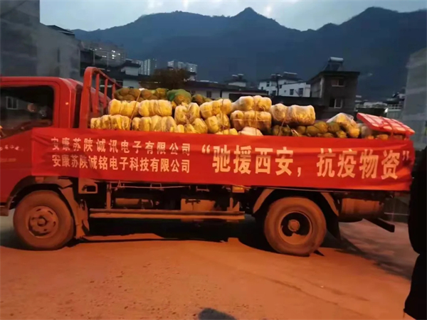 1月1日上午,11輛總價值121.8萬元抗疫物資專車從漢濱駛出,中午時分到達西安雁塔區和航天基地。這批滿載著廣大民營企業愛心的蔬菜、豬肉、米面油、礦泉水、牛肉醬及漢濱特產將在當地統一調配下進入各大社區,用于保障社區居民的日常生活及安全防護。