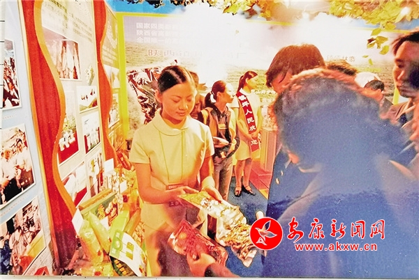 2003年,第四屆安康龍舟節(jié)期間,在鎮(zhèn)坪縣的展廳里,工作人員給參觀購買的群眾介紹家鄉(xiāng)特產(chǎn)。 吳定國 攝