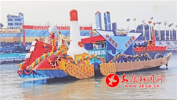 2003年,在第四屆安康龍舟節(jié)開幕式上,瀘康酒廠的“大酒瓶子”一時成為焦點。吳定國 攝