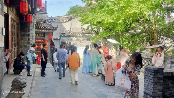 蜀河古鎮景區迎來客流高峰,僅假期前三天,單日接待游客超六千人。在景區各集散地,文旅中心為廣大來蜀游客提供志愿講解、旅游咨詢服務;同時,中心開放一樓大廳,為游客提供座椅茶水,避暑休憩及開放廁所服務,全力提升游客游覽體驗,營造舒心旅游環境。中心協助蜀河鎮開展的“穿越千年古鎮 暢游詩意蜀河”系列文化活動更是精彩紛呈,樂趣不斷,讓游客體驗千年古鎮的文化魅力。