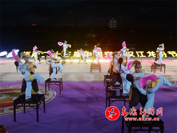 本報訊(記者 周健)6月22晚,安康龍舟文化園流光溢彩、歌舞飛揚,第二十三屆中國安康漢江龍舟節夜景演出活動拉開帷幕。