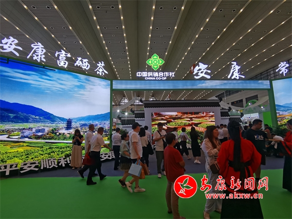 安康市供銷社在陜西供銷展區以“安康富硒茶,常飲常安康”為主題,組織30家企業搭建了300平方米的安康富硒茶特裝展館,開展富硒綠茶、紅茶、絞股藍茶、新式茶飲展示展銷,與全國各地名茶一起“同臺競技”。安康富硒茶展銷現場,許多茶客慕名前來品茶、買茶,洽談茶葉經營,線上直播、茶藝表演等活動同步開展,現場一派熱鬧的景象。