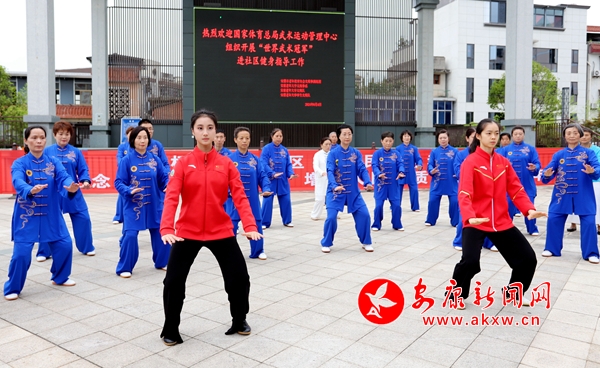 “上午現場觀看盧向成太極劍奪冠的比賽,下午他就來到我們身邊教太極拳,太激動了。”6月4日,呂泰東、楊順洪、盧向成、胡書婷、楊瑾5名世界太極拳冠軍走進安康老年大學廣場,為百余名太極拳愛好者示范講解太極拳。