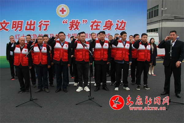 活動現場,進行了急救包、體檢卡捐贈暨投放儀式,為愛心企業頒發了捐贈榮譽證書,紅十字志愿服務隊進行了授旗及宣誓;市紅十字會應急救護師現場作心肺復蘇及AED示范講解。