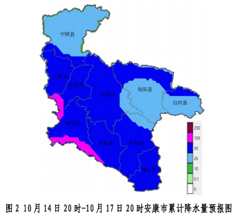 10月16日:陰天轉大雨,寧陜、石泉、漢陰、紫陽、嵐皋、漢濱北部、旬陽北部局地暴雨(25~60毫米,局地可達70毫米以上);
