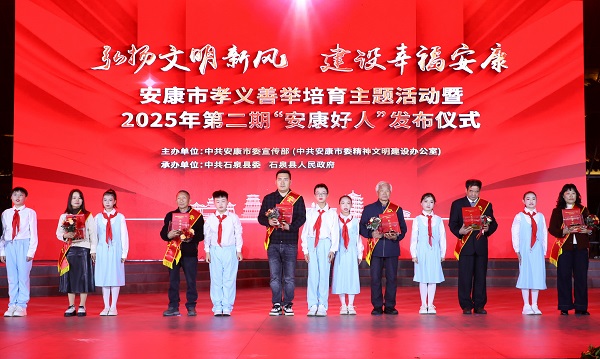 本次活動(dòng)以“弘揚(yáng)文明新風(fēng) 建設(shè)幸福安康”為主題,由市委宣傳部主辦、石泉縣委和縣政府承辦,旨在深入學(xué)習(xí)貫徹黨的二十屆四中全會(huì)精神,扎實(shí)推進(jìn)崇德向上幸福安康建設(shè);顒(dòng)現(xiàn)場(chǎng),通過(guò)播放典型人物短片、現(xiàn)場(chǎng)互動(dòng)訪談等形式,生動(dòng)再現(xiàn)了陳登發(fā)、高虎、黃壽琴等好人代表的感人事跡。市級(jí)領(lǐng)導(dǎo)及“中國(guó)好人”“陜西好人”等先進(jìn)典型代表為28名新入選的“安康好人”頒發(fā)紀(jì)念證書(shū)。活動(dòng)現(xiàn)場(chǎng)同時(shí)發(fā)布了2025年安康市“新時(shí)代好少年”名單,24名青少年獲得殊榮。
