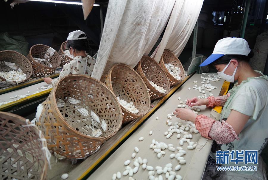 7月19日,工人在石泉縣陜西天成絲業有限公司生產車間內選繭。新華社記者 邵瑞 攝