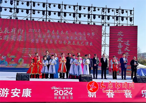 上午10時,張燈結(jié)彩的廣場上,花團錦簇,人聲鼎沸,歌聲四起,熱鬧非凡。舞臺大屏幕上“龍辰有約、樂游安康,歡歡喜喜過大年,我的中國夢——音樂走基層”字眼格外醒目。一首由安康十大民歌手周正凱演唱的《清江戀歌》拉開序幕,讓市民們在悠久綿長動聽的音樂聲中去感受新春佳節(jié)色彩斑斕的文化韻味。安康市音樂家協(xié)會副主席李娜、央視《星光大道》優(yōu)秀歌手李剛及音樂家協(xié)會張輝、卜照飛、李銘、張榮榮、周婷婷、秦維強相繼登臺獻歌,《蘆花》《父親的草原母親的河》《卓瑪》等一首首膾炙人口的動聽歌曲,贏得了現(xiàn)場近千名觀眾的陣陣掌聲。特別是獨具藝術(shù)魅力的小提琴獨奏《我的祖國》、安康二胡藝術(shù)培訓中心小朋友的《北京有個金太陽》、配樂朗誦《在春天的懷抱里》、民樂小合奏《揚鞭催馬運糧忙》無不曼妙爾雅,把演出活動推向高潮。