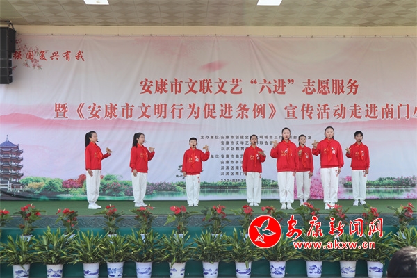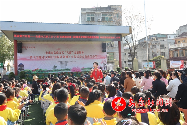 本網訊(見習記者 張璇)3月20日,由市創文辦、市文聯主辦的“強國復興有我”安康市文聯文藝“六進”志愿服務暨《安康市文明行為促進條例》宣傳活動在漢濱區南門小學舉行。