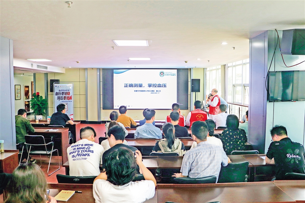 本網(wǎng)訊(記者 翟本榮/文 吳單/圖)5月17日是第20個世界高血壓日,當(dāng)天上午,安康日報社邀請市中醫(yī)醫(yī)院高新分院相關(guān)專家,來單位開展“有效控制 健康長壽”高血壓及康復(fù)醫(yī)療健康科普知識專題講座。報網(wǎng)全體干部職工70余人參加。