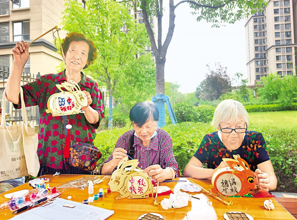 9月12日,漢濱區江北街道后張嶺社區在山水嶺居小區舉辦“中秋佳節情意濃,文明風尚萬家揚”活動;顒佑删用褡约簞撘膺M行文采、繪畫展示。(胡建波 攝)LvM安康新聞網