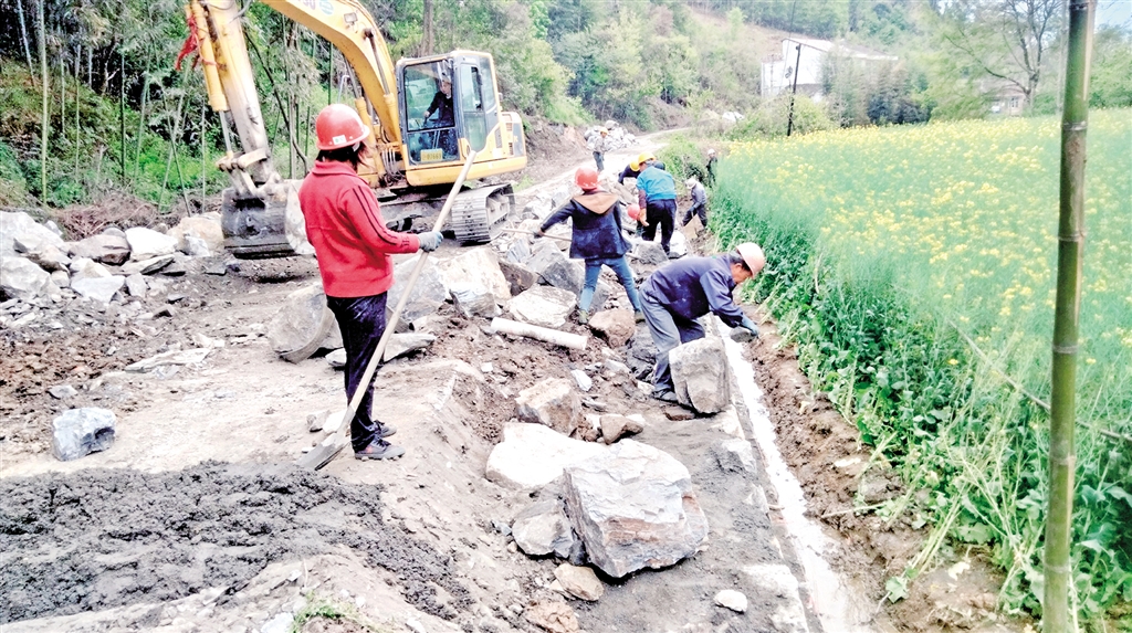 瀛湖鎮清泉村以工代賑項目采用“公益性基礎設施建設+勞務報酬發放+就業技能培訓+公益性崗位設置”的賑濟模式,吸納附近群眾和其他低收入村民參與項目建設,拓寬村民就業渠道,增強村民致富信心。由村集體民主議事決策,推選項目施工負責人,及時跟進工程建設,項目全程公示公開,由村民嚴管監督推動項目順利實施,確保工程發揮實效。