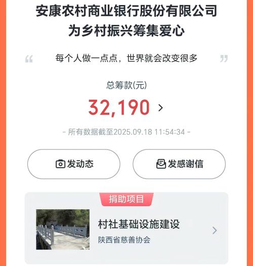 凝聚慈善力量,助推共同富裕。“一日捐”活動在陜西農信安康農商銀行已持續開展7年,該項活動已成為陜西農信安康農商銀行踐行社會責任的一項實際行動,更是“大愛農信”企業文化的有效載體。