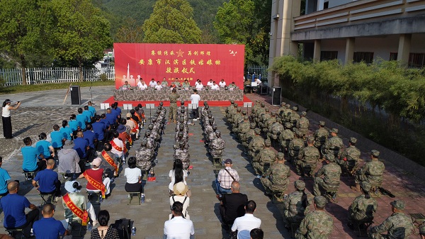 漢濱區舉行“鐵姑娘”女子民兵排授旗儀式
