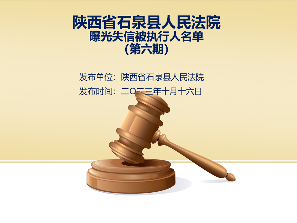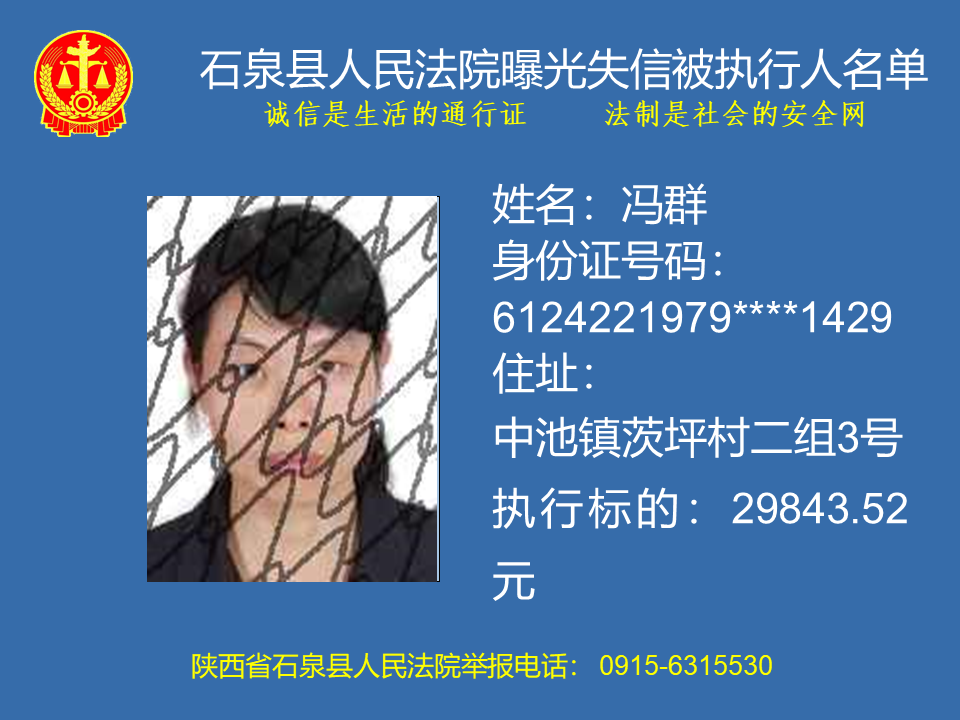 為了進一步加大執行力度,保障勝訴當事人的合法權益,推進社會誠信體系建設,依照《中華人民共和國民事訴訟法》、《最高人民法院關于公布失信被執行人名單信息的若干規定》等法律、司法解釋的有關規定,現對一批已進入執行程序,且尚未全部履行義務的被執行人進行媒體曝光,歡迎廣大群眾支持石泉縣人民法院的工作,向我院提供被執行人的財產線索,使生效法律文書能夠得到切實執行,讓人民群眾切實感受到公平正義就在身邊。