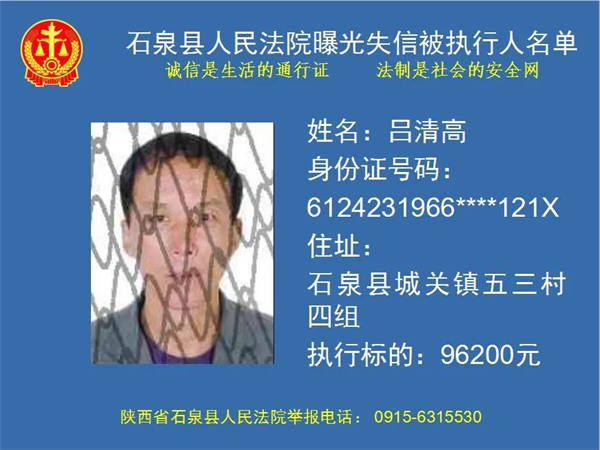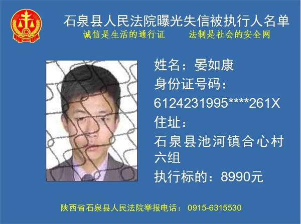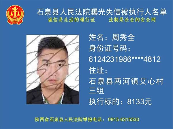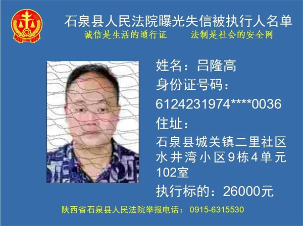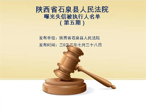 曝光失信 | 石泉縣人民法院曝光失信被執(zhí)行人名單!(2022年第五期)