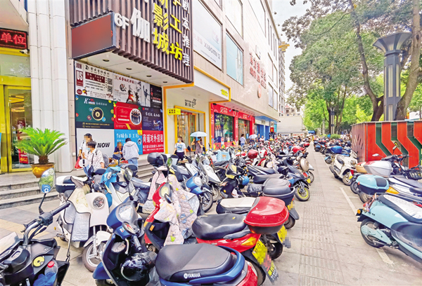 6月18日,在安康城區(qū)金州南路人行道上,部分車輛占用盲道、車身超出停車線(圖1),未按要求停放車輛(圖2),造成了安全隱患。(記者 張喬 攝)……