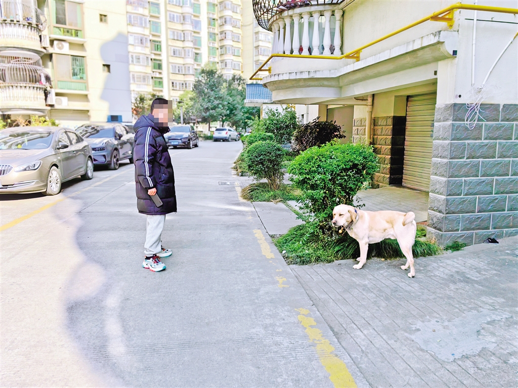 1月26日,我市中心城區某小區內有市民遛狗不牽狗繩。鄭時根 攝……