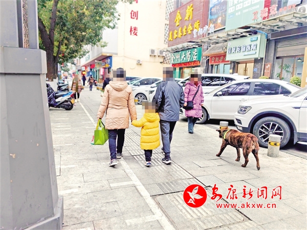 1月30日,安康城區巴山西路有市民遛狗不栓狗繩。鄭時根 攝……