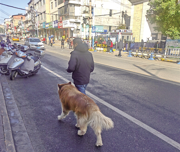 12月21日,在安康大劇院附近,有市民遛狗不牽繩。記者 潘潤生 攝……