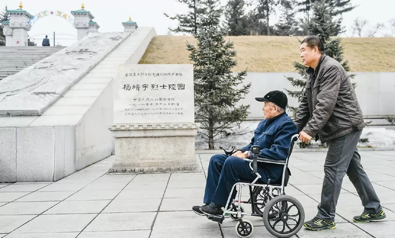 徐振明是吉林省通化市革命烈士陵園管理所首任所長,現(xiàn)年96歲。他先后參加過抗日戰(zhàn)爭、解放戰(zhàn)爭,1950年參加抗美援朝戰(zhàn)爭,曾榮立多次戰(zhàn)功。他退伍轉(zhuǎn)業(yè)到楊靖宇烈士陵園工作,父子兩代默默守護英雄陵墓60余年,身體力行保護革命遺跡,講述英雄故事,弘揚革命精神。圖為徐振明(左)和兒子徐永軍來到楊靖宇烈士陵園。 新華社記者 王昊飛/攝