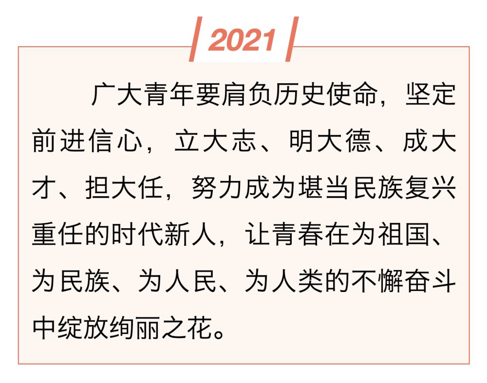 新時代新征程,中國青年將牢記總書記囑托,激揚奮斗青春,擔當時代重任,讓青春年華在奮斗與奉獻中煥發出絢麗光彩。