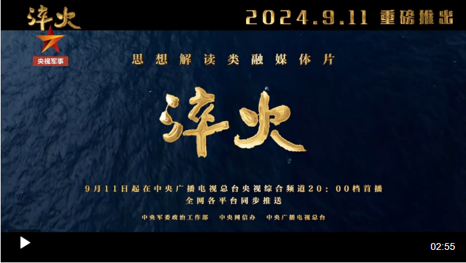 《淬火》的推出將進一步教育激勵廣大官兵深刻領悟“兩個確立”的決定性意義,增強“四個意識”、堅定“四個自信”、做到“兩個維護”,貫徹軍委主席負責制,堅決聽從黨中央、中央軍委和習主席指揮,忠實履行黨和人民賦予的使命任務,為如期實現建軍一百年奮斗目標、加快把人民軍隊建成世界一流軍隊而團結奮斗。