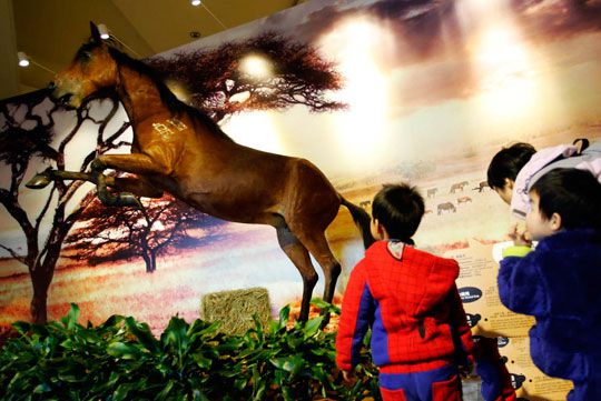 圖為市民正在觀看展覽。湯彥俊 攝1月23日,正在上海科技館舉行的“騏驥盛壯”馬年生肖展吸引了眾多市民前來參觀。該展覽旨在馬年春節來臨之際,以馬的生物和文化……