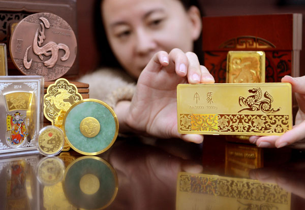 11月5日,工作人員展示2014年馬年賀歲生肖系列產(chǎn)品。當(dāng)日,由中國(guó)印鈔造幣總公司發(fā)行、中鈔國(guó)鼎公司總經(jīng)銷的馬年賀歲生肖系列產(chǎn)品在北京菜百上市。此次推出的系列……