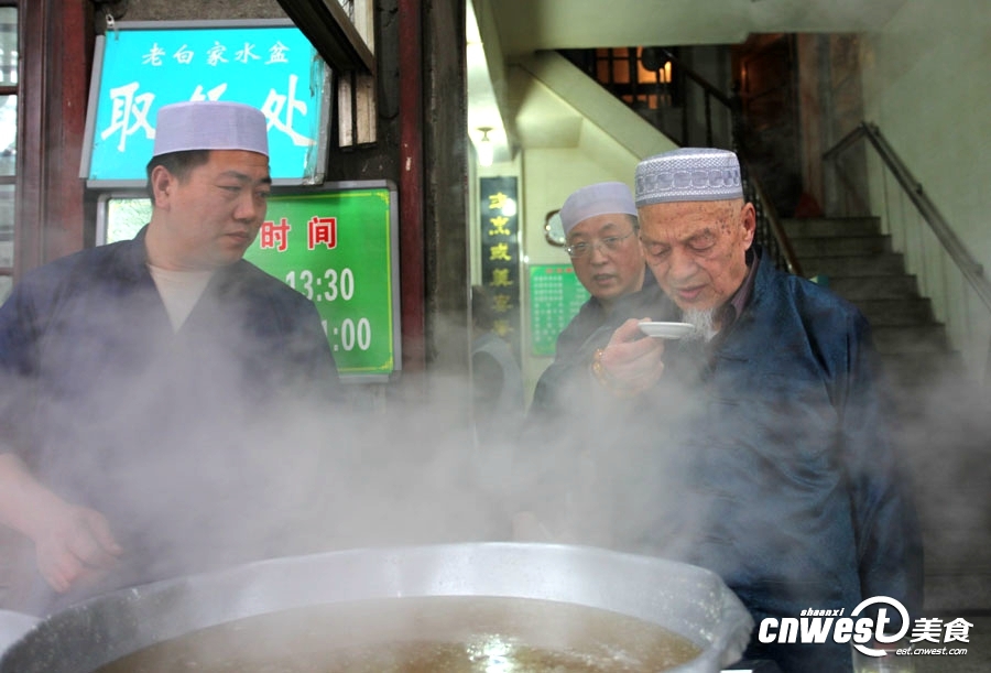 話說西安回坊的北廣濟(jì)街上有個老白家水盆,看似貌不驚人,卻有一百多年的歷史,這個家族已有五代人傳承制作水盆羊肉的技藝。老白家水盆的第三代傳承人白玉亭,已經(jīng)83歲了,如今,老爺子依然每天坐鎮(zhèn)自家的“老同盛永”號,一日三餐,必食自家的水盆羊肉。一則離不開自家這口,二則監(jiān)督兒女們的出品質(zhì)量。D8w安康新聞網(wǎng)