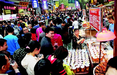 清明小長假,名揚海內外的西安市北院門小吃一條街上,灌湯包子、柿子餅、羊肉泡饃、水盆羊肉、鏡糕、烤全羊等上百個品種的特色小吃吸引了世界各地數以萬計的游客……
