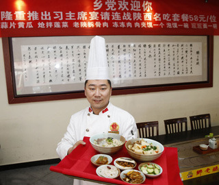 2014年2月19日,西安昆明路,豐慶宮推出習主席請連戰吃飯的套餐,四小份涼菜,肉夾饃、biang biang 面和羊肉泡饃。圖片來源:CFP視覺中國據報道,2月18日,中共中……