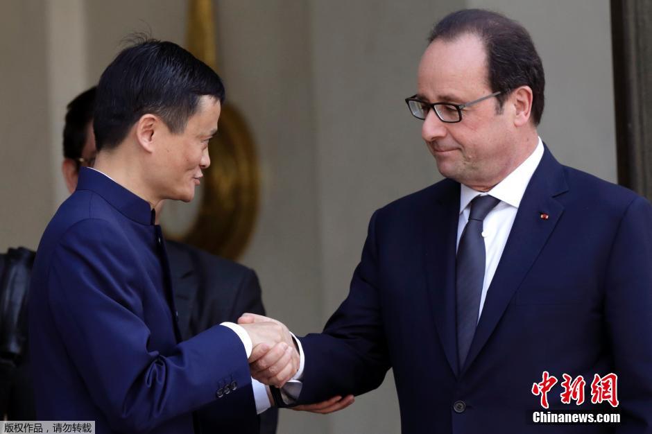 當地時間2015年3月18日,法國巴黎,阿里巴巴集團CEO馬云抵達愛麗舍宮,與法國總統奧朗德舉行會談。
