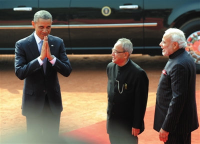 泰姬陵不僅清潔一新,印度政府還派重兵守衛。白宮卻宣布奧巴馬不參觀泰姬陵了。25日,印度首都新德里,奧巴馬任期內第二次訪問印度,印度總理莫迪(右)前往迎接……