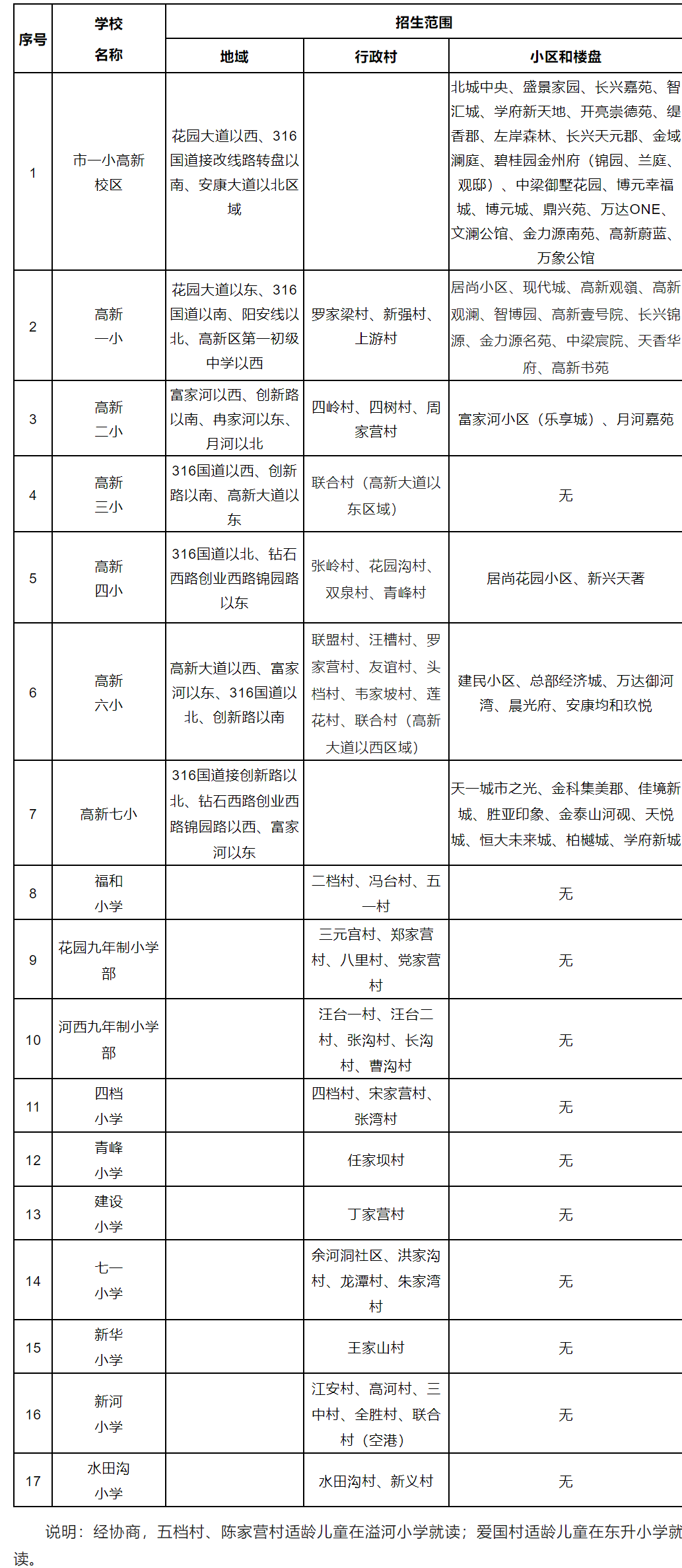 三、安康高新區2023年小學服務范圍一覽表