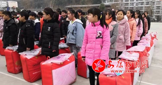 1月3日,陜西安康紅河建設工程有限公司、安康市宏泰建筑工程有限公司向漢濱區茨溝鎮初級中學貧困學生捐贈棉被209床,書包209個,總價值40000元。(通訊員 李林霞/文圖)9XT安康新聞網