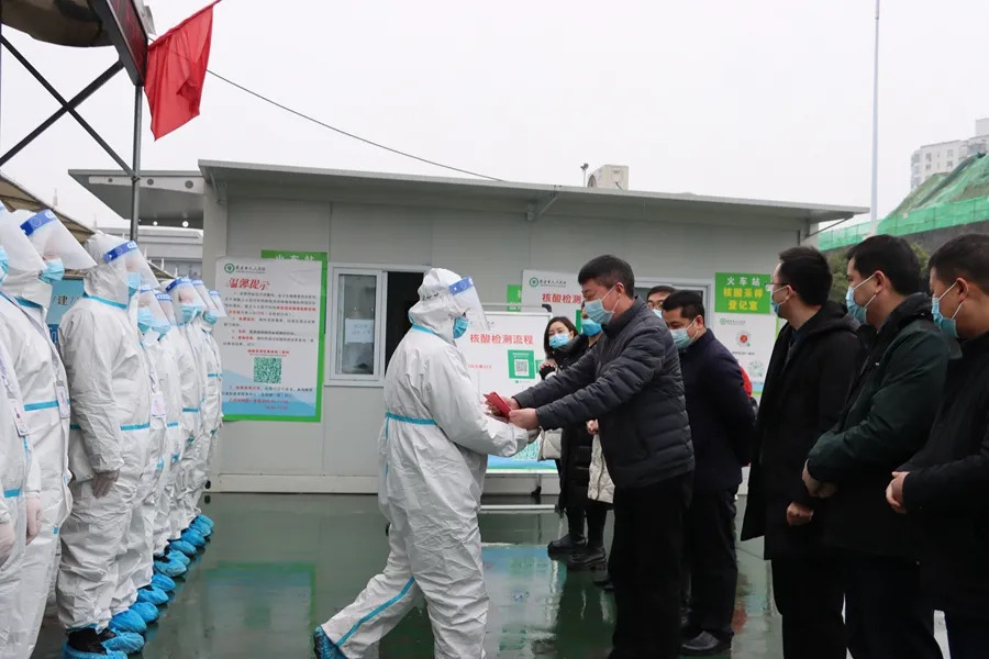 “兄弟姐妹們辛苦了,非常感謝你們的不計得失,默默堅守,為打好打贏疫情防控戰提供了重要保障。臨近春節,來安返安人員比較多,加上近期氣溫低,排查管控壓力大,是疫情防控的關鍵時刻,大家仍需從嚴從實從緊落實各項防控措施,確保群眾過一個祥和的春節,同時,大伙兒也要做好自身防護,注意夜間保暖,勞逸結合,預祝大家新年快樂。”