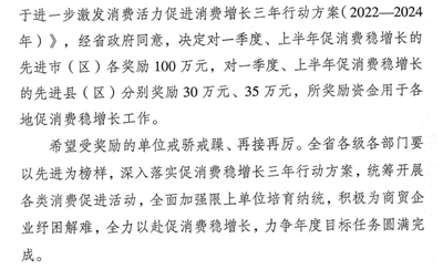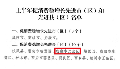 12月19日,陜西省商務廳通報了2022年促消費穩增長先進市(區)和先進(區),漢濱區獲評“上半年促消費穩增長先進區”,獎勵35萬元。