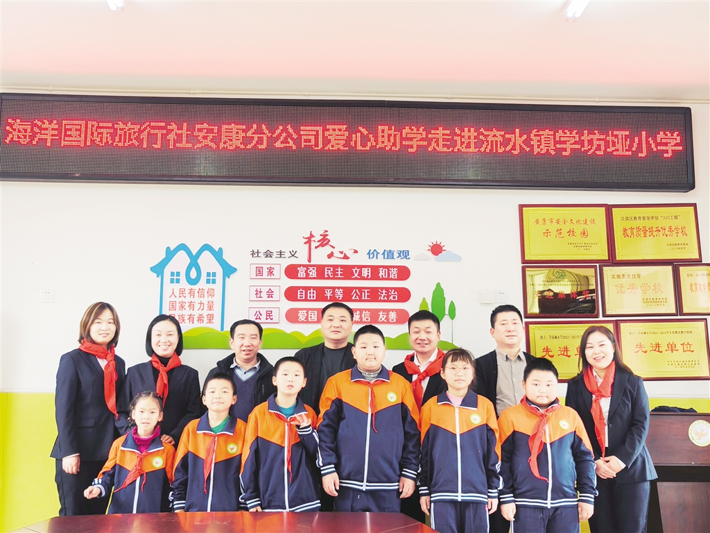 捐贈儀式上,學坊埡小學少先隊員為海洋國際旅行社安康分公司的愛心人士系上紅領巾,歡迎他們的到來。隨后,愛心人士們把一份份愛心大禮包送到孩子們手中,鼓勵他們克服困難、努力學習。孩子們感動之余紛紛表示,一定珍惜這份來自社會大家庭的關愛,將會更加努力學習,力爭早日成為國家有用之才。據了解,此次活動海洋國際旅行社安康分公司共為學坊埡小學捐贈助學物資近萬元,其中包括秋季校服、學習用品及愛心大禮包等,惠及該校多名學生。