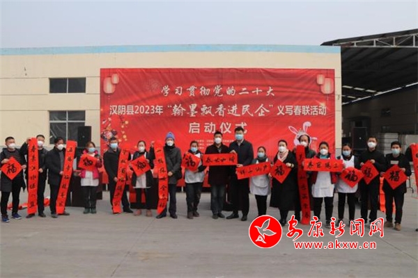 本網訊(通訊員 唐成明)寅虎辭歲萬象新,卯兔迎福報春來。為認真學習貫徹落實黨的二十大精神,進一步弘揚傳承中華民族的優秀傳統文化,大力營造全縣上下關心支持民營經濟發展的濃厚氛圍。1月12日上午,漢陰縣工商聯聯合縣文聯舉行“翰墨飄香進民企”義寫春聯活動啟動儀式。