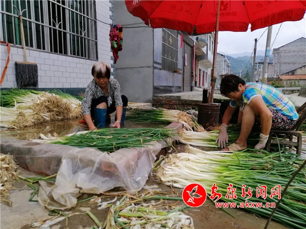 眼下,正值新蔥大量上市的季節。在安康市恒口示范區高樓村二組,筆者看到兩位老人正坐在門前臨時壘起水池邊包裝整理從地里挖回的新蔥,臉上充滿收獲的喜悅。tQG安康新聞網