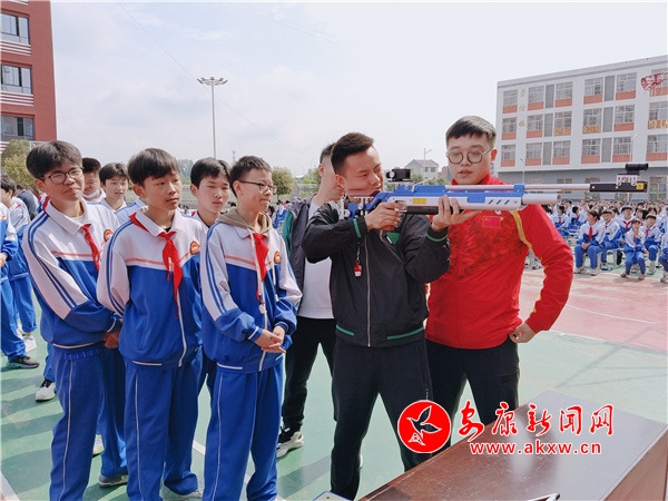 10米氣手槍項目兩屆奧運會冠軍、省射擊射箭運動協會主席郭文珺,射箭項目世界冠軍王剛,射擊飛碟項目全國冠軍張波,射擊步槍項目優秀運動員李駿騰來到學校, 與廣大師生分享了自己的冠軍之路,鼓勵青少年要熱愛生活、熱愛運動,在運動中要善于拼搏、敢于拼搏,在運動中感悟奧運精神。同時,還告訴孩子們要認真學習文化知識,掌握一定的生活本領,爭做社會主義合格的建設者和接班人。