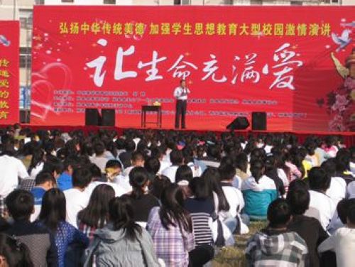 10月10日,由縣委宣傳部、嵐皋縣關(guān)心下一代工作委員會(huì)、縣教體局、縣文明辦、縣慈善協(xié)會(huì)聯(lián)合舉辦的“讓生命充滿愛”大型校園激情演講活動(dòng)在我縣體育場(chǎng)隆重舉行!