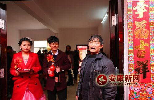 安康新網訊(通訊員 楊寧 陳苗)1月29日早上7點半,家住寧陜縣城關鎮朱家咀村小堰組的武道勝來到了同村的黃靜家,他帶領著迎親的隊伍,來迎娶他的妻子黃靜。天公作美,為一對新人送去了象征純潔愛情的瑞雪,鋪滿了屋頂、道路。四面八方趕來的親朋好友齊聚一堂,共同分享了一對新人的喜悅!