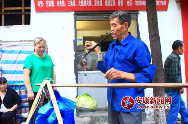 從家到縣城約兩里路,老人不緊不慢的走著。到達縣城時,縣城周邊賣菜的群眾或推著手推車,或騎著三輪車紛紛趕往菜市場。老人擔著兩竹筐菜走在街頭,不時有人前來挑挑揀揀、討價還價。