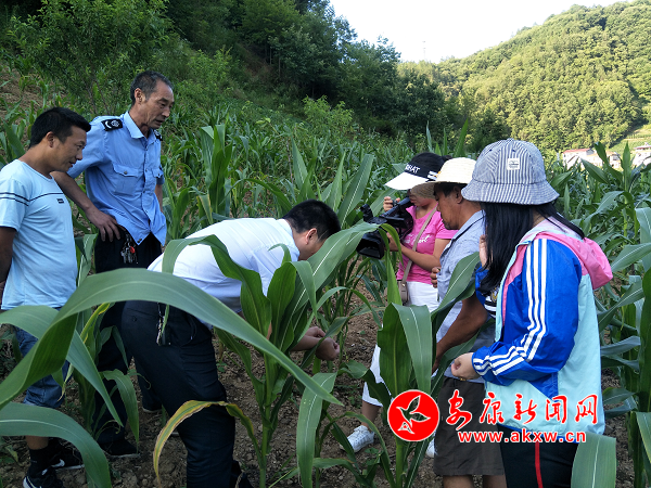 自6月27日在曙坪鎮戰斗村,7月8日在城關鎮文彩村的玉米田局部發現草地貪夜蛾幼蟲后,立即安排技術人員分別駐守該蟲害村,抓住低齡幼蟲和化蛹前防治時期,組織專業防治隊員,采用三唑磷、氯蟲苯甲酰胺、甲維高氯氟等藥劑,實施統防統治。