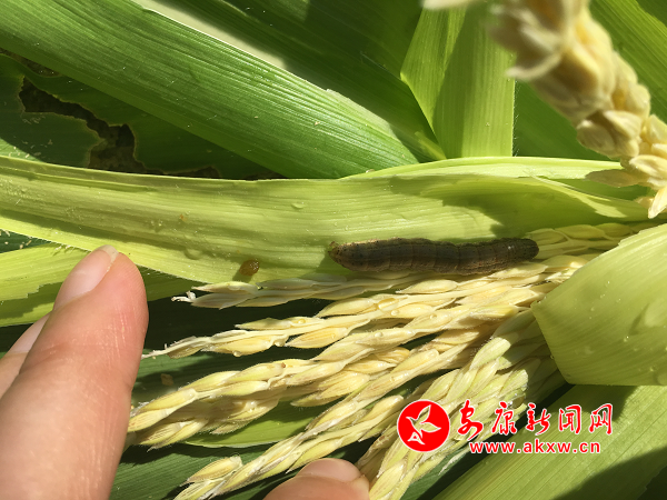 草地貪夜蛾正在啃食玉米